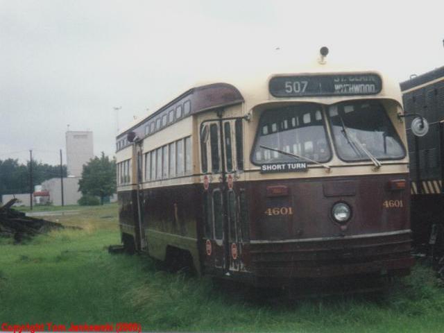 Car 4601 in storage in Michigan in 2000 Trainweb.org photo: http://www.trainweb.org/Tomsrailtravels/PCC%20Quest.htm |