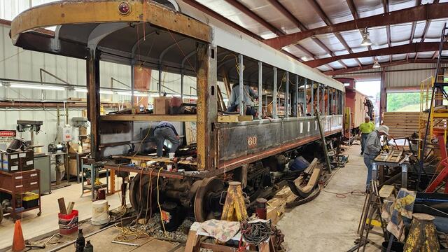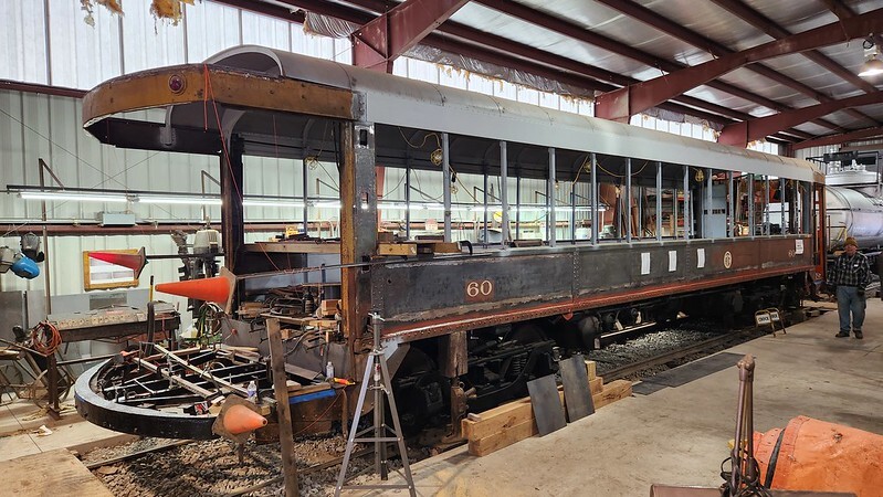 Car 60 in the shop at R&GVRRM in 2022 Flickr photo: https://www.flickr.com/photos/rgvrrm/52551417977/ |
