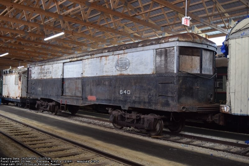 Car 640 in storage at IRM in 2017 Illinois Railway Museum photo: https://www.irm.org/gallery/CLE640/aac |