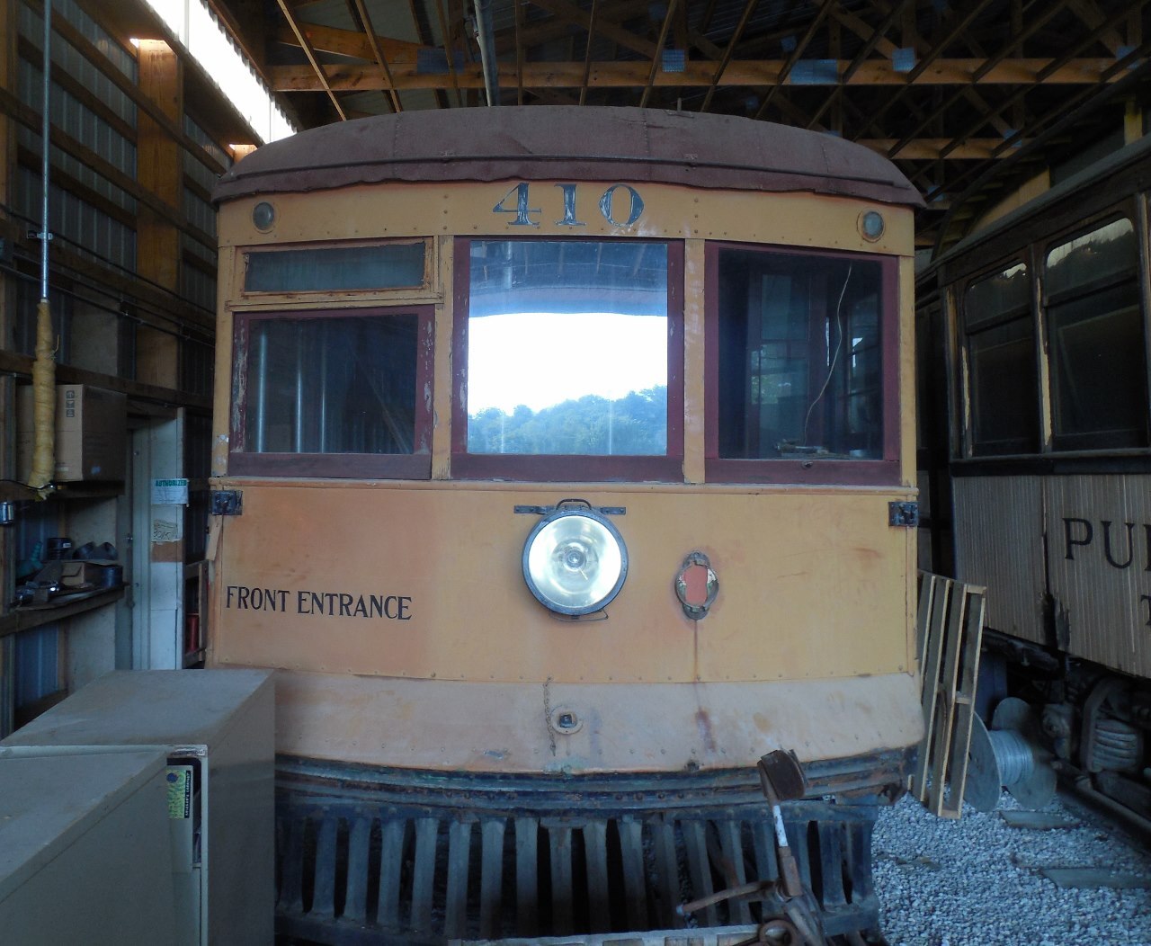 Car 410 in storage at NMOT in 2015 Hicks Car Works photo: https://hickscarworks.blogspot.com/2015/09/visit-to-mot-part-4.html |