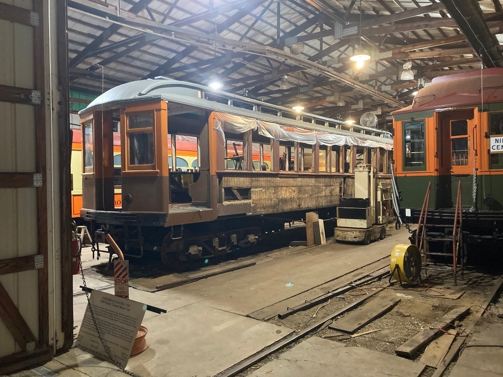 Car 1808 under restoration at IRM in 2023 Hicks Car Works photo: https://hickscarworks.blogspot.com/2023/07/fresh-paint-up-top.html |